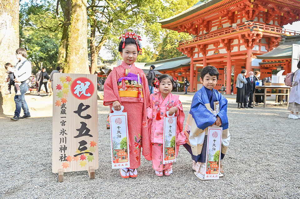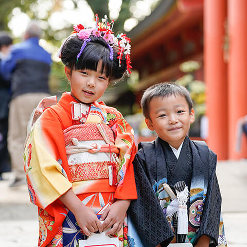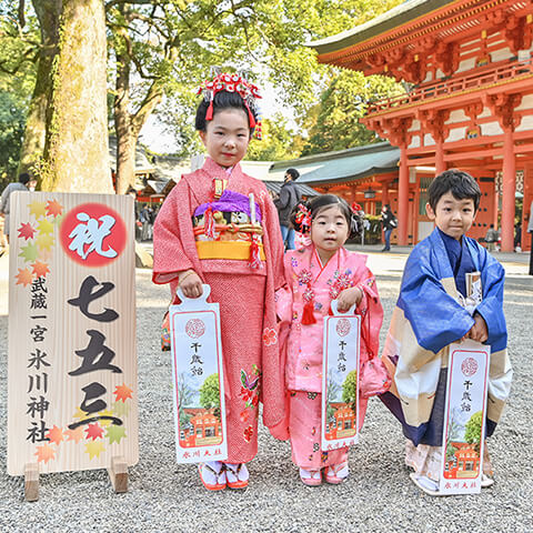 七五三詣は神社にお参りして、誕生からこれまでの健康を感謝するとともに、これからの成長を祈る人生の大切な節目です。