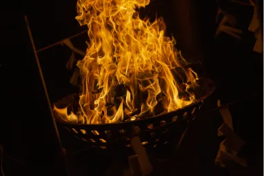 毎夜7時半に境内にかつての火祭りを伝えるかがり火をたき上げますが、この火にあたると無病息災、火防の御神徳にあずかれるといわれます。11月30日より大湯祭本祭の為に神職は境内に篭り潔斎致します。
