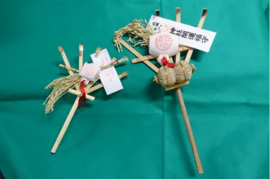 祭典でお供えされる小麦や使用される小麦藁莚は、神領地であった上落合地区より奉納されるのが習わしでした。現在、上落合地区に小麦農家は無くなっておりますが、他の地域で耕作された小麦を同地区の氏子が莚を編み奉納する事で伝統を繋いでおります。この小麦藁莚は拝殿や神橋上で使用されます。