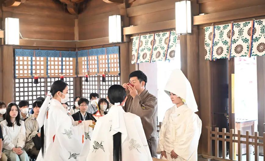 採用入社後に、神楽や結婚式・祈祷受付について講習を受けていただき、その後、実際にご奉仕していただきます。