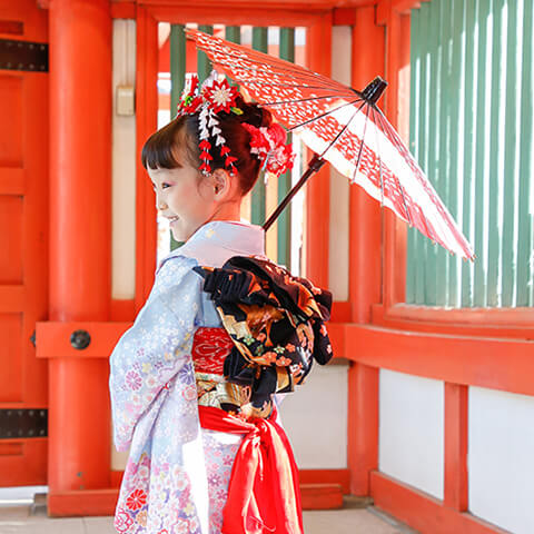 七五三詣は神社にお参りして、誕生からこれまでの健康を感謝するとともに、これからの成長を祈る人生の大切な節目です。