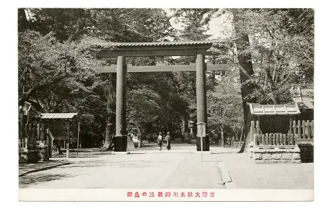 明治、大正、昭和と時代が移るうちに神門や楼門の造営が行われ、鳥居の数も四基から三基となり、二の鳥居の位置も変化しています。