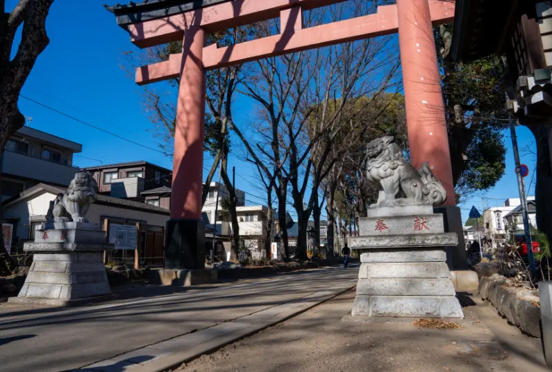 現在の二の鳥居の辺りは参道と岩槻道(旧道)が交差する地点で人の往来も多かったと推測されます。